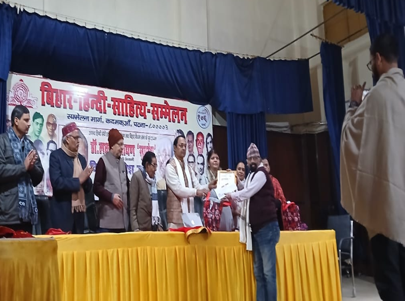 पं. विद्यानन्द-गोकुलानन्द स्मृति-संस्थान के सौजन्य से कवि-पत्रकार नीरव समदर्शी को प्रतिष्ठित ‘गोकुलानन्द तिवारी स्मृति सम्मान’ से नवाजा गया। वहीं, कवि जय प्रकाश पुजारी को ‘पं. विद्यानन्द मिश्र स्मृति सम्मान’ प्रदान किया गया। स्मृति-संस्थान की ओर से कवयित्री डॉ. पूनम आनंद ने सम्मानित हिन्दी-सेवियों को अंग-वस्त्र, प्रशस्ति-पत्र और दो हजार एक सौ रुपये की सम्मान-राशि भेंट की।